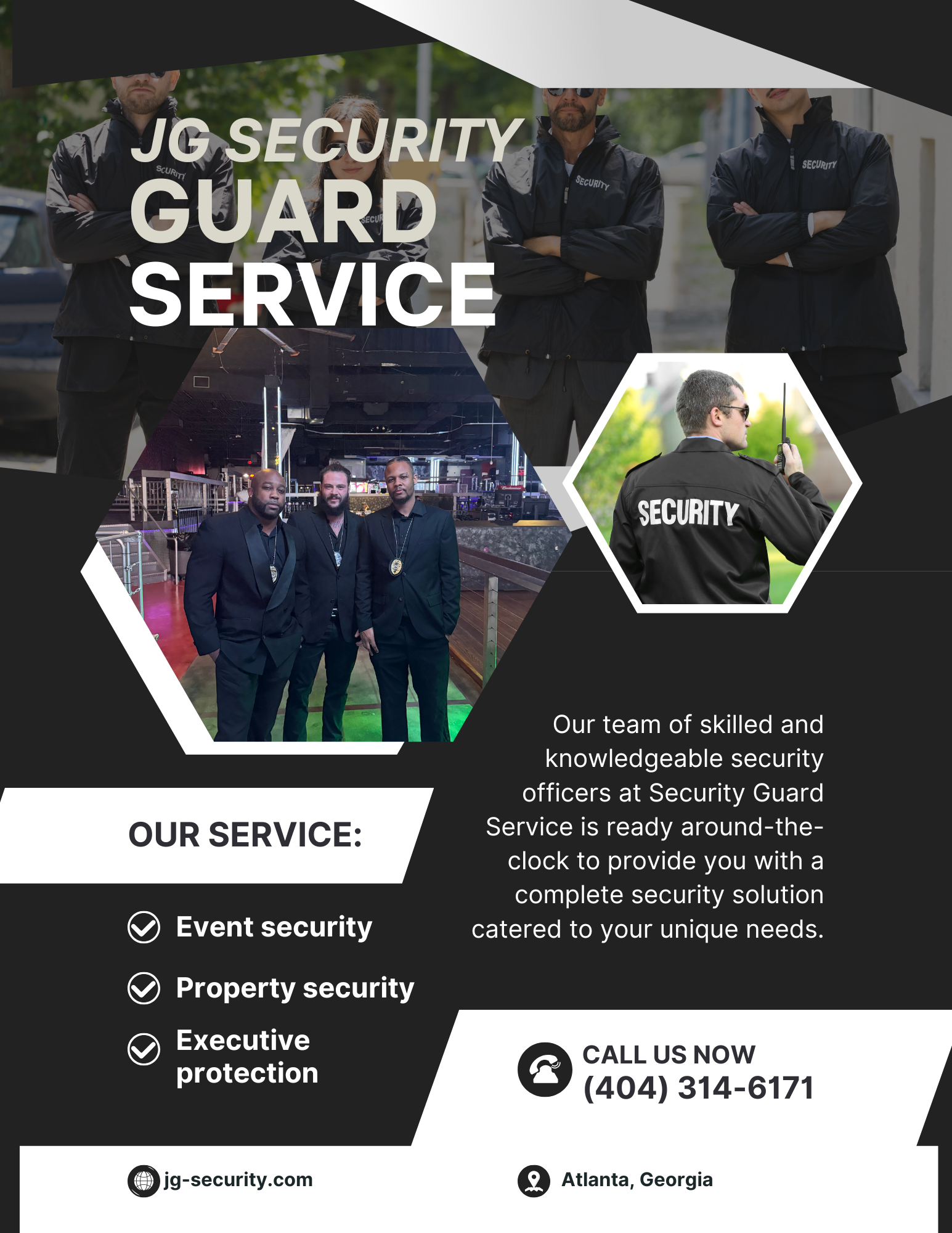 At JG Security, we provide professional security guard services tailored to meet your specific needs. Our certified team works around the clock to ensure your safety and peace of mind.